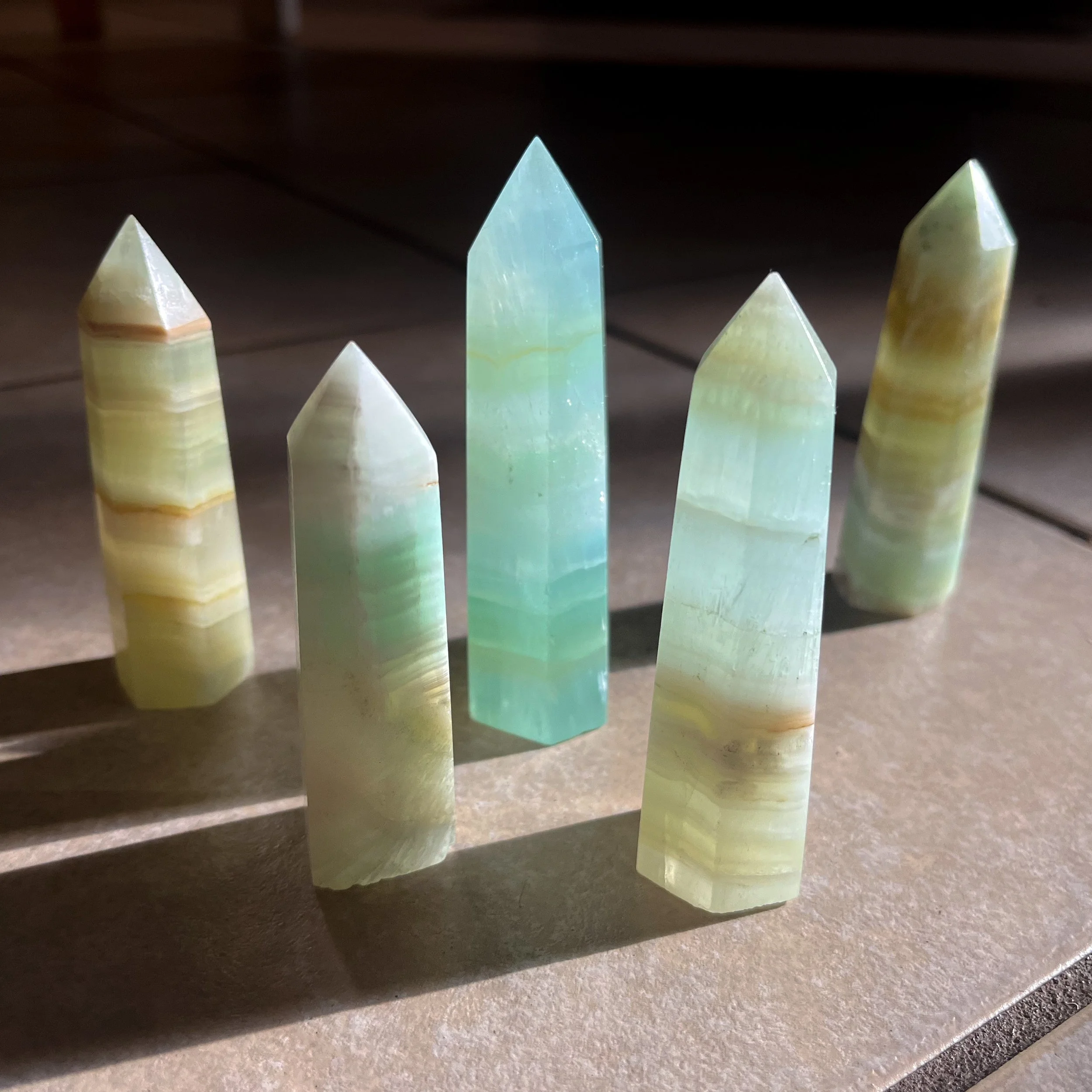 Categories: All Tumbled Towers All / Towers Green Aventurine $15.00 Sold out Mookaite Jasper $19.00 Pistachio Calcite $19.00 Rose Quartz $20.00 Labradorite $21.00 Rainbow Fluorite $23.00 Blue Apatite $27.00 Sold out Moss Agate $27.00